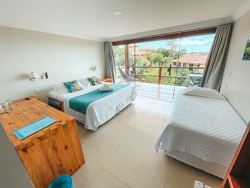 Com um jardim e muita tranquilidade, cercada de Mata Atlântica, a Pousada está situada em uma pequena colina e encontra-se localizada num dos melhores bairros de Búzios, em João Fernandes, a passos da famosa praia e também das mais lindas Praias da Cidade, como Azeda, Azedinha, Ossos e Armação e da famosa Rua das Pedras. Faz-se tudo a pé. Quartos confortáveis com banheiro privativo, uma ducha espetacular e água quente na pia. Amenites gratuitos. Os quartos são decorados em tons pastel, contam ainda com TV tela plana 43 polegadas, pacote de canais completo, alguns com SmartTv, armário de roupa, mesa de trabalho, ar condicionado e frigobar abastecido com diversas bebidas cobradas à parte. Algumas categorias possuem vista para o jardim e outras para o mar. Estacionamento e Wi-fi gratuitos.